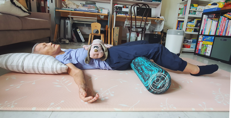 Although my student was seeking relief from a stiff neck, shoulders and back - common issues that I've worked with - I have to be extra careful with her. The area around her stoma is tender: any stretch that is too much may cause it to tear. Even seemingly gentle movements like raising her arms overhead have to be done with care. At every moment, I am attending to her breathing, her energy, looking out for any signs of tension or discomfort as we ease her body into different shapes.